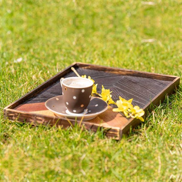This tray is made from special beautiful wood: golden oak, mahogany and smoked ash. Is a precious gift you can offer to someone loved, is an usefull object in every house, is the mood you need when you drink your favorite coffee and read from your book, relaxing in your private space.