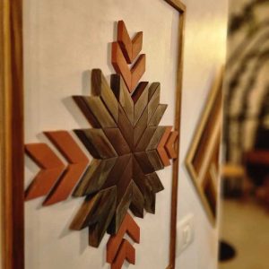 This wood wall or shelve decoration, was very much inspired from our traditional embroidered or painted floral patterns. You can find these symbols, on all our traditional clothes, special blouses, sewn by hand, by local talented women.